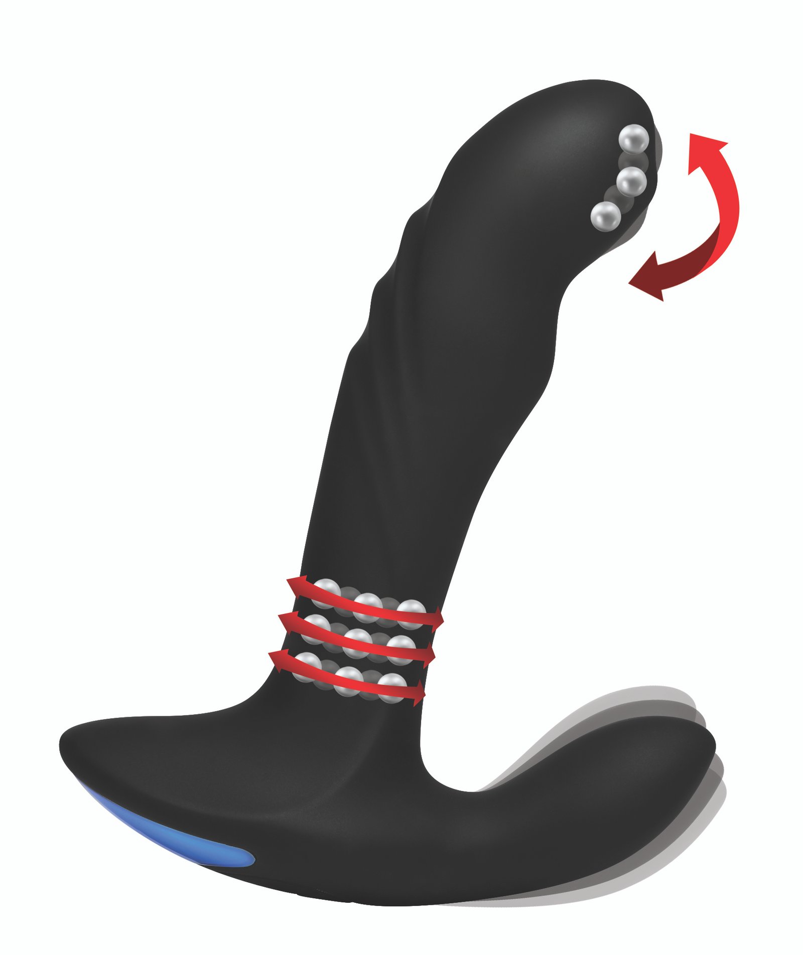 Treat your tush to a trifecta of tantalizing temptation. The 17x P-Trigasm features a powerfully buzzing perineum stem with 3 speeds and 4 patterns of external vibration. It also contains several rows of rotating beads beneath the surface of the shaft base, to swirl seductively around your sphincter with 5 settings. Finally, a bead beneath the surface of the tip will move up and down, milking your sweet spot with an additional 5 modes of motion. Made of silky-smooth silicone, you can enjoy a seamless insertion. This premium, rechargeable pleasure tool is waterproof, non-porous, and phthalate-free. Avoid use with silicone lubricants. Clean after use with mild soap or toy cleaner. Measurements: 6.5 inches in total length, 5.3 inches insertable length, 1 inch at narrowest diameter, 1.45 inches at widest diameter Material: Silicone, ABS Color: Black Note: Charges via USB