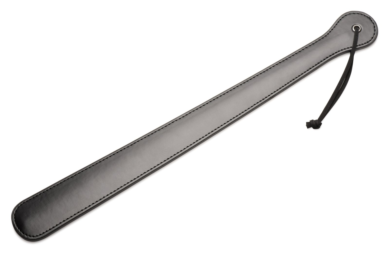 This long, strong paddle has a backbone! Built with a long, metal spine inside, it will deliver powerful and biting pain upon impact! Make your partner squeal as you rub the smooth, flat surface of the PU leather against their tender skin in between paddling. Enjoy the look, feel and use of this classing slapper paddle as you use it against sensitive areas such as the thighs or buttocks! The PU leather is easy to clean and vegan-friendly. The metal is solid and encased inside. After use, simply clean with antibacterial spray or soap and water, wipe clean and dry. Measurements : Overall length: 19 inches, Overall width: 2 inches Materials : PU Leather and Metal Color : Black