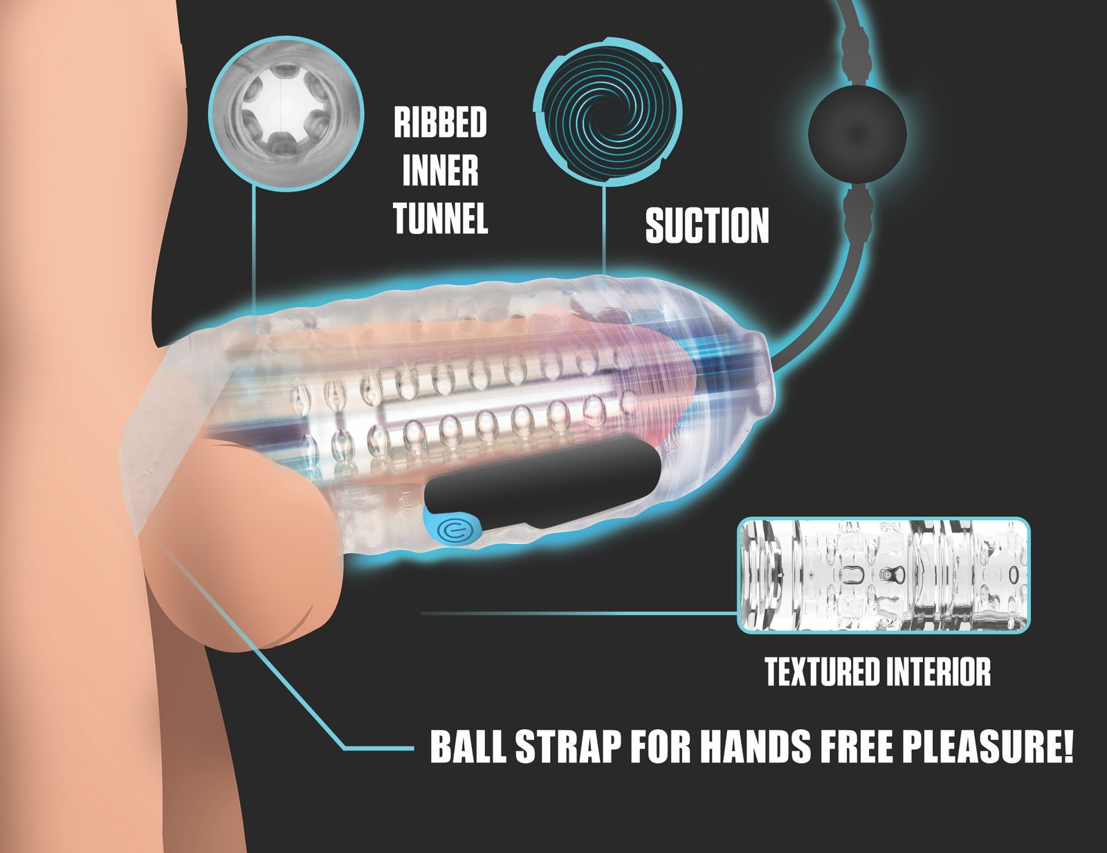 This small but mighty handheld milker is perfect as a discrete and powerful masturbation toy! Use some water-based lube and slip on the clear, stretchy, TPE sleeve and pull the ball strap around your testes to keep it in place. Connect the tube to the head of the sleeve and slip the powerful bullet vibrator into the pocket of the sleeve. Then enjoy intense milking via the suction and vibrating features! Use the mini, handheld remote to choose the intensity you desire. Enjoy 3 speeds and 7 patterns of buzzing vibration against your shaft! Explore all three levels of powerful suction and get up to 3,000 RPMs of suction on the highest setting! With a liquid chamber in the middle of the suction tube, you can also rest assured that clean up will be easy. That liquid chamber will stop any extra fluid from going too far down the tube. The sleeve itself is also easy to wash; use warm water and mild soap on everything, rinse and then spray with a toy cleaner before letting air dry. Do not submerge the remote or the bullet vibrator. Want to give your hand a break? Desiring something a little like oral and less like jerking off? Enjoy this auto milking toy! Add lube to the inside of the sleeve and to your shaft, then slide it over your shaft, pulling the ball strap behind your testes. Make sure the bullet is inserted into the side pocket and the tube is connected to the top of the sleeve. With the bullet vibrator paired with the remote, turn on the vibe and the suction. Enjoy using them simultaneously and test yourself to see how long you can last! Measurements: Remote: 6 inches Long x 2.6 inches Wide. Stroker: 7.8 inches Long x 2.8 inches Wide, 0.75 inches inner diameter (unstretched), 1.8 inches diameter for ball strap. Hose length: 44 inches. Bullet: 2.4 inches x 0.75 inches. RPM: 3000 Suction power: 1st speed: .025 mpa / 3.6 psi 2nd speed: .05 mpa / 7.3 psi 3rd speed: .07 mpa / 10.2 psi Materials: ABS plastic, TPE, silicone Color: Black, blue, clear