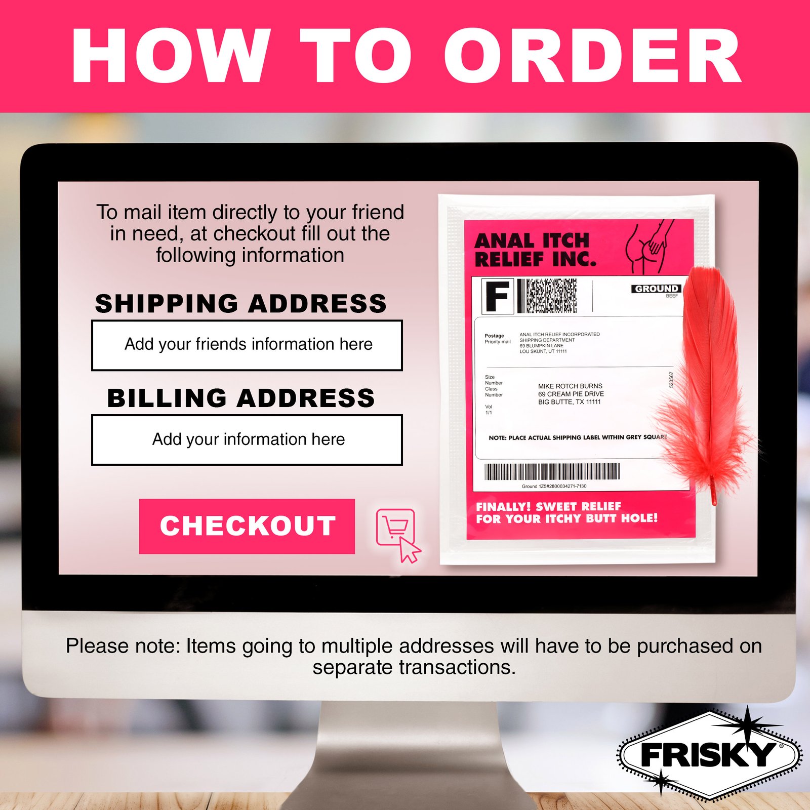 We all have that one friend. Maybe YOU are that friend. You know, the one who likes to play pranks and has a dirty sense of humor? Well, here’s a fun joke gift to give to your friends! With this Anal Itch Relief pack you can discreetly and carefully take care of that stubborn itch! No need to see a doctor, this is the finest remedy known to man and used for thousands of years! Simply mail using the bubble mailer package with the feather enclosed and you or your friend will be in possession of a certain cure in no time! Measurements: Bubble mailer: 9.25 inches Length x 7.1 inches Wide x 0.1 inches Deep Feather length varies from 4.7 inches to 6.7 inches Materials: Synthetic fibers Color: Red