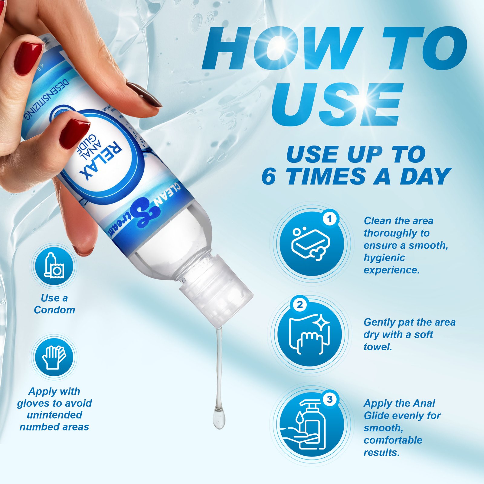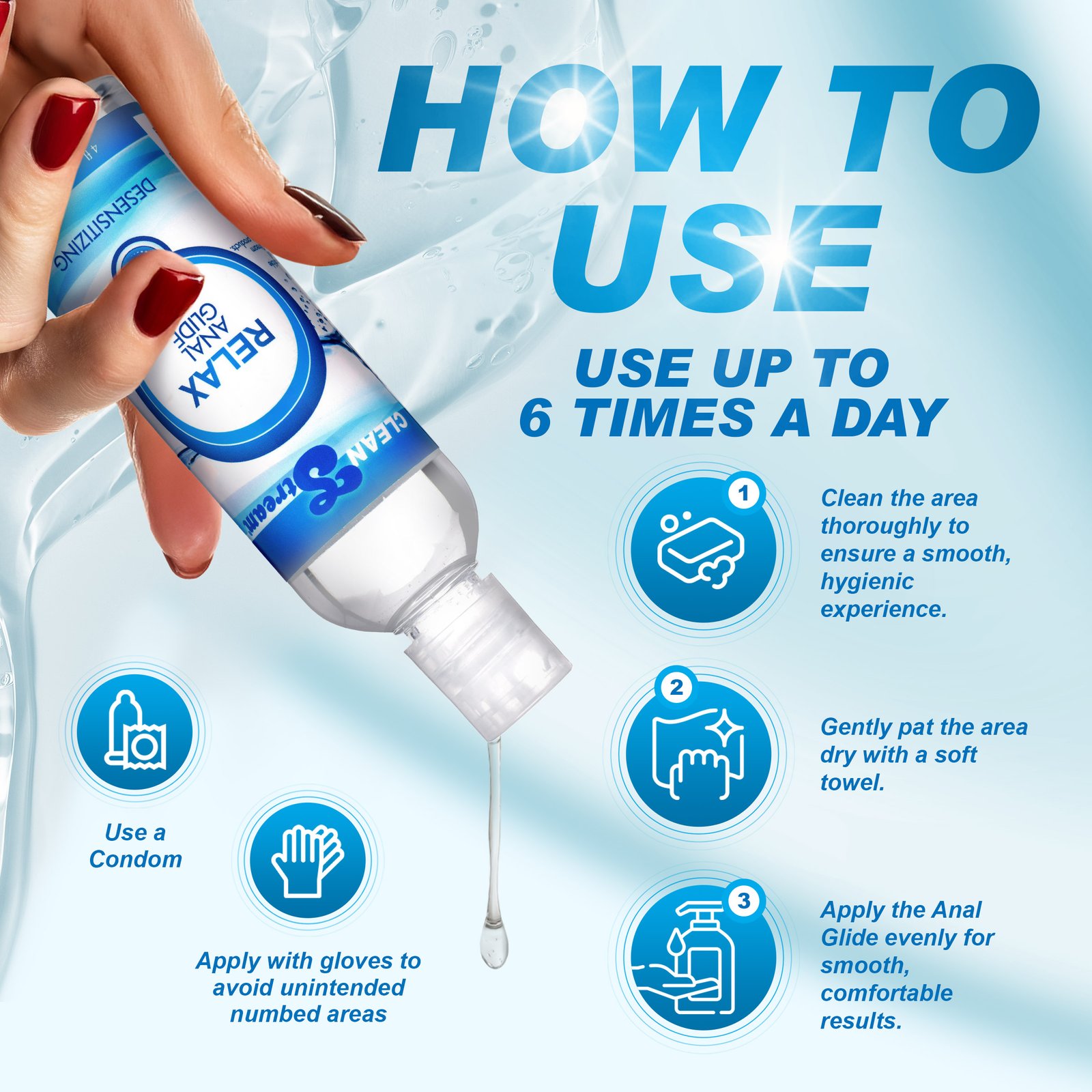 Relax Anal Lubricant is a desensitizing lube that can help ease some of the potential discomfort associated with anal play. This silky smooth liquid keeps unwanted friction at bay, and offers a light numbing effect to help keep things comfortable during backdoor exploration. Size: 4 ounces, Active Ingredient: Lidocaine