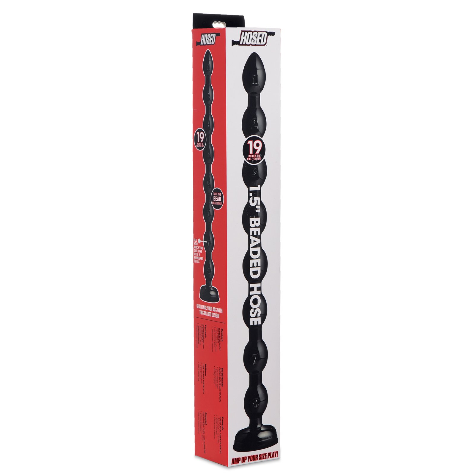 Suction down the base of these sleek, extra-long anal beads and prepare to test your limits With over an inch and a half of girth, you will feel stuffed after inserting the first smooth, tapered bulb. But the more the merrier, as they say Feed each of the eight swells of this flexible tool into your orifice until you are at maximum capacity. The phthalate-free material is compatible with water-based and silicone lubricants and cleans off after use with mild soap and warm water. Measurements: 19.75 inches in total length, 18.75 inches insertable, 1.5 inches in diameter. Material: PVC. Color: Black.