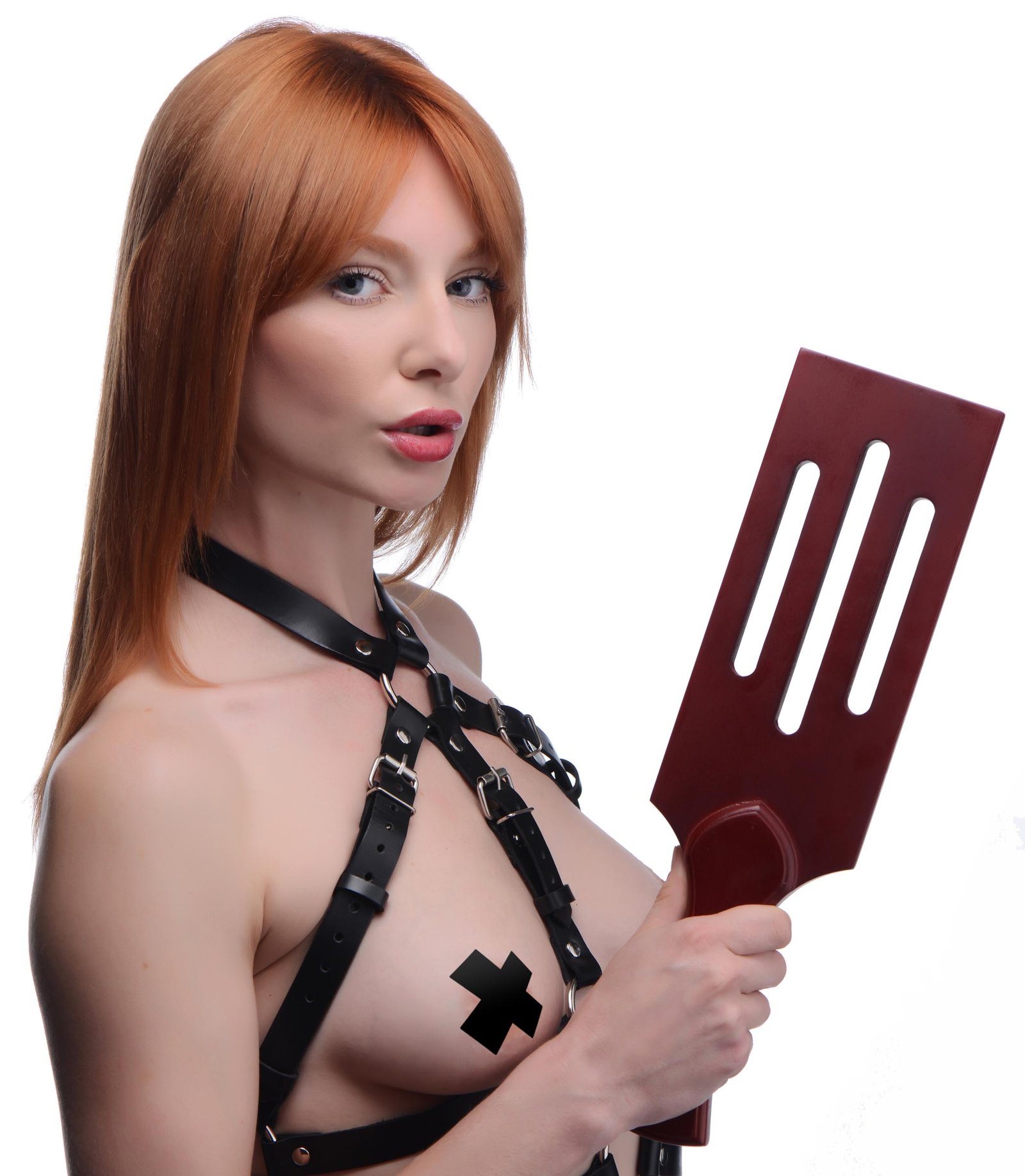 Master’s Paddle features an authoritative design, built to help Doms dominate the mind and body their playthings. Made with sturdy and attractive Beech Wood for a genuine aesthetic that is at home in any dungeon. Shaped with hard corners and a curved handle to satisfy your eyes and your hands when in use, as well as aerodynamic slots to assist you with each swing when punishing your sub. This reliable tool suits all skill levels, perfect for beginners to enter the world of BDSM or experts looking to expand their collection! Measurements : 14.6 inches total length, width 4 inches, height 1 inch Materials : Beech wood Color : Wood