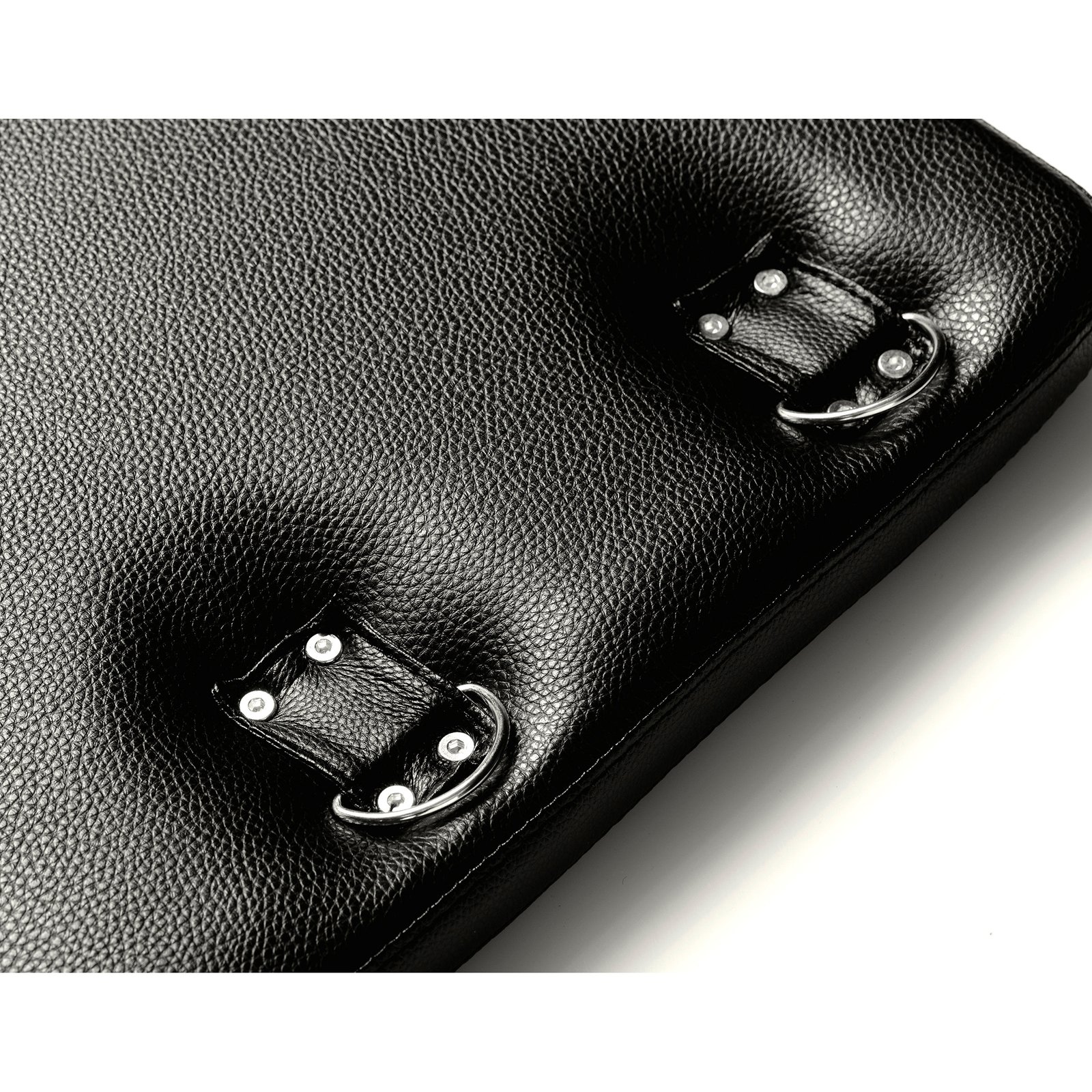 Turn any space into a sex dungeon The Bondage Board is designed to bring your fantasies with you, wherever you go Simply unfold the board and attach your restraints to create a versatile piece of BDSM furniture. With 14 different D-ring attachment points, it is easy to achieve a multitude of sexual positions and gain full access to your partners vulnerable body. The thick padding makes it comfortable to play for as long as you want, and the material is easy to wipe clean. Carrying handles and a discreet exterior make it perfect for a night at your partners home or taking on vacation, however it is also convenient for ready use and secret storage in your own home. Confine your lover for bondage play anywhere and anyhow your heart desires Measurements: 42.5 inches in total unfolded length, 24 inches in width. 21.25 inches in length when folded. Material: PU leather, metal, foam, and wood. Color: Black. Note: Restraints sold separately.