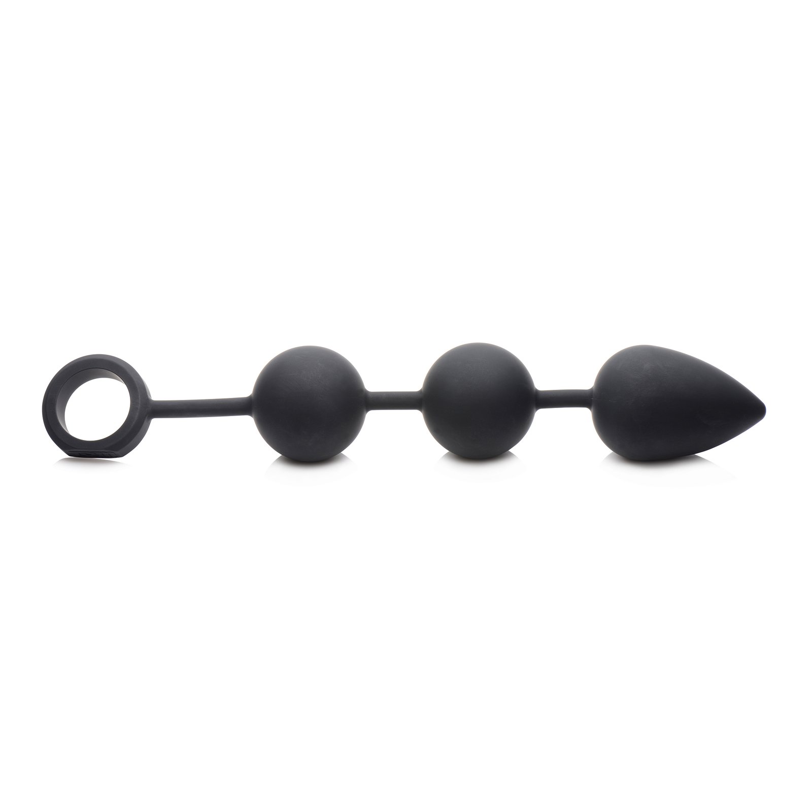 Explore a new level of anal pleasure with these unique anal beads that are not just huge, but heavy These massive anal balls are internally weighted, with a silicone skin and convenient retrieval cord. The steel balls inside provide weight and resistance, while the silicone exterior provides a silky-smooth feeling. The first bulb features a tapered tip to make insertion more comfortable. The easy-retrieval cord has a large finger loop, also made of sturdy silicone, to tug these hefty spheres out at just the right time. The entire outside is non-porous, phthalate-free, and body-safe. Clean after use with mild soap or toy cleaner and avoid use with silicone lubricants. Measurement: 14.5 inches in total length, 12.5 inches insertable length, 2.25 inches at widest diameter. Material: Silicone, steel. Color: Black. Note: Free Tom of Finland collector card included!