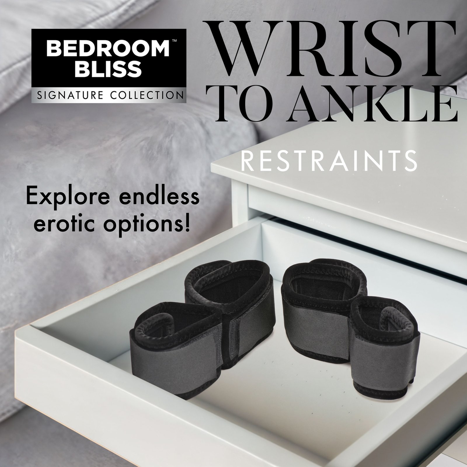 These wrist and ankle cuffs are perfect for beginners or for those who want easy, soft restraints! Made with nylon and covered in velvet, these are super soft against the skin while also being strong and sturdy! Easily put them on or take them off in seconds, too! The velcro closures ensure ease of use and speed when needing to take them off! After a hot and sweaty scene, it’s a pain to clean cuffs. Not anymore! These cuffs are machine washable! Throw them in the washing machine on a cold cycle and have them fresh for another day! They’re blindfolded, gagged, and waiting for your next move. You cuff their wrists and ankles in the soft cuffs. Then, you take their arms and legs and spread them across the bed. There are attachments beneath the bed that you cuff them to. As they lay there, naked and exposed, you can’t imagine anything more beautiful or sexy as they quiver with anticipation. You begin the scene with impact play and delight as their skin starts to blush, the blood rushing through them along with adrenaline. Then you begin to tickle them. The torment begins as they scream and laugh, unable to get free of your mischievous plan. As they thrash around, they can’t escape the restraints and their body arches and writhes! Finally you cease your sadistic tickling, and start brushing your fingers gently across their skin. They’re so sensitive that every touch elicits an exaggerated response, a twitch here and there, and a terrified but gleeful shriek! Then you begin again with impact play and their body relaxes, fully ready for the deeper scene. Measurements : Wrist cuffs adjust up to 14.5 inches in circumference. Ankle cuffs adjust up to 19 inches in circumference. Materials : Velvet (polyester), Nylon, Velcro Color : Black, gray